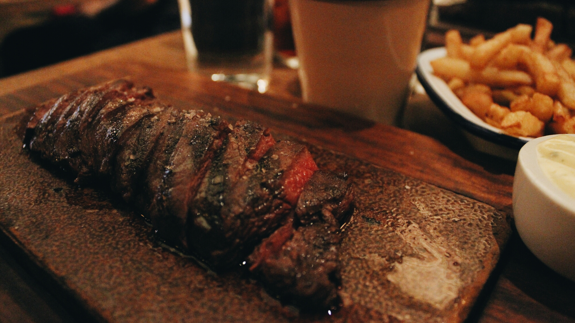Flat Iron gets it right. Very right. The atmosphere, the food, the staff. I can’t fault this place. Steak cooked to perfection – a very generous size too, as you’ve probably noticed. The fries, oh my God the fries. Probably the best I’ve had in a long time. You’ll receive a little coin after your meal, entitling you to a free caramel sorbet, topped with the most amazing dark chocolate trimmings. Divine.