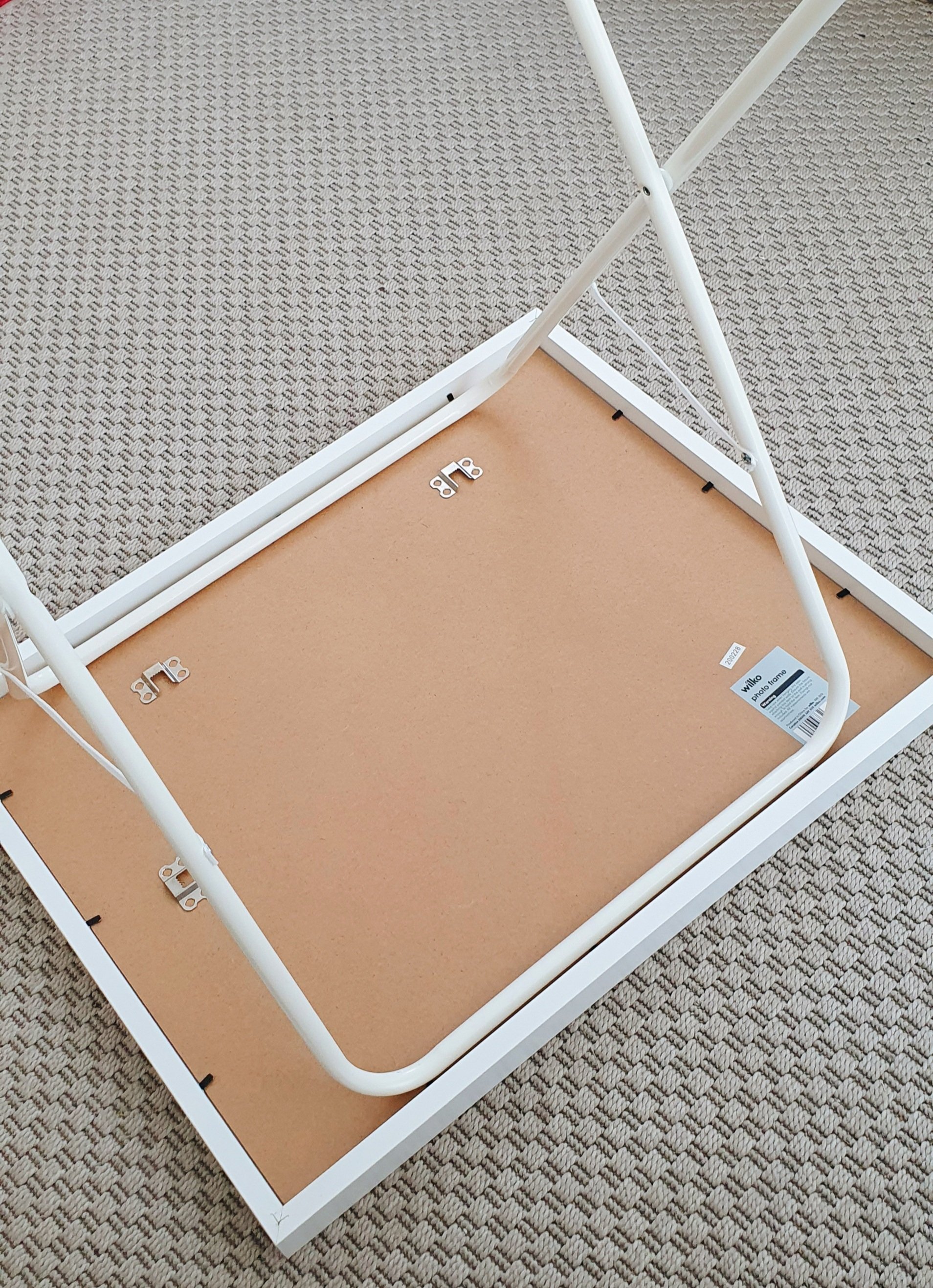 I figured that a photo frame would work for this project, and would also give it versatility – as you can literally frame any piece of fabric or wall paper, to give your table that really unique look.