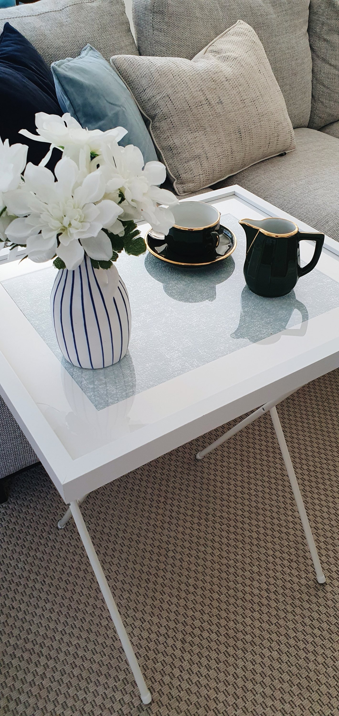 Since the legs were still pretty sturdy and still had a bit of life in them, I started thinking about ways to utilise them. The first idea that came to mind was to make a little coffee/side table. But what would I use as a top? I thought of putting a tray, but nice looking trays are quite expensive. For any upcycling project the goal is always to save money, while giving the piece an upgraded, more high end look.