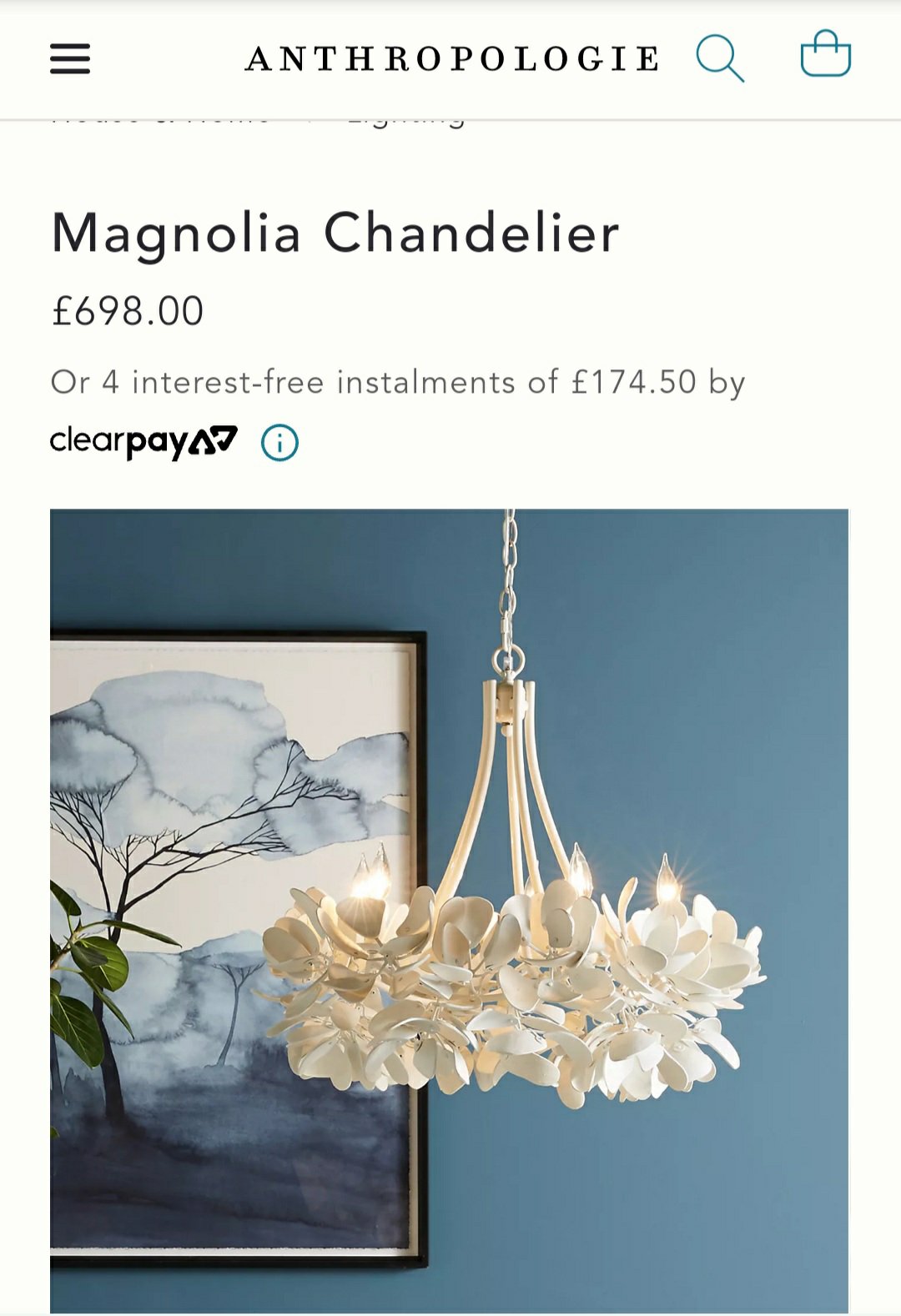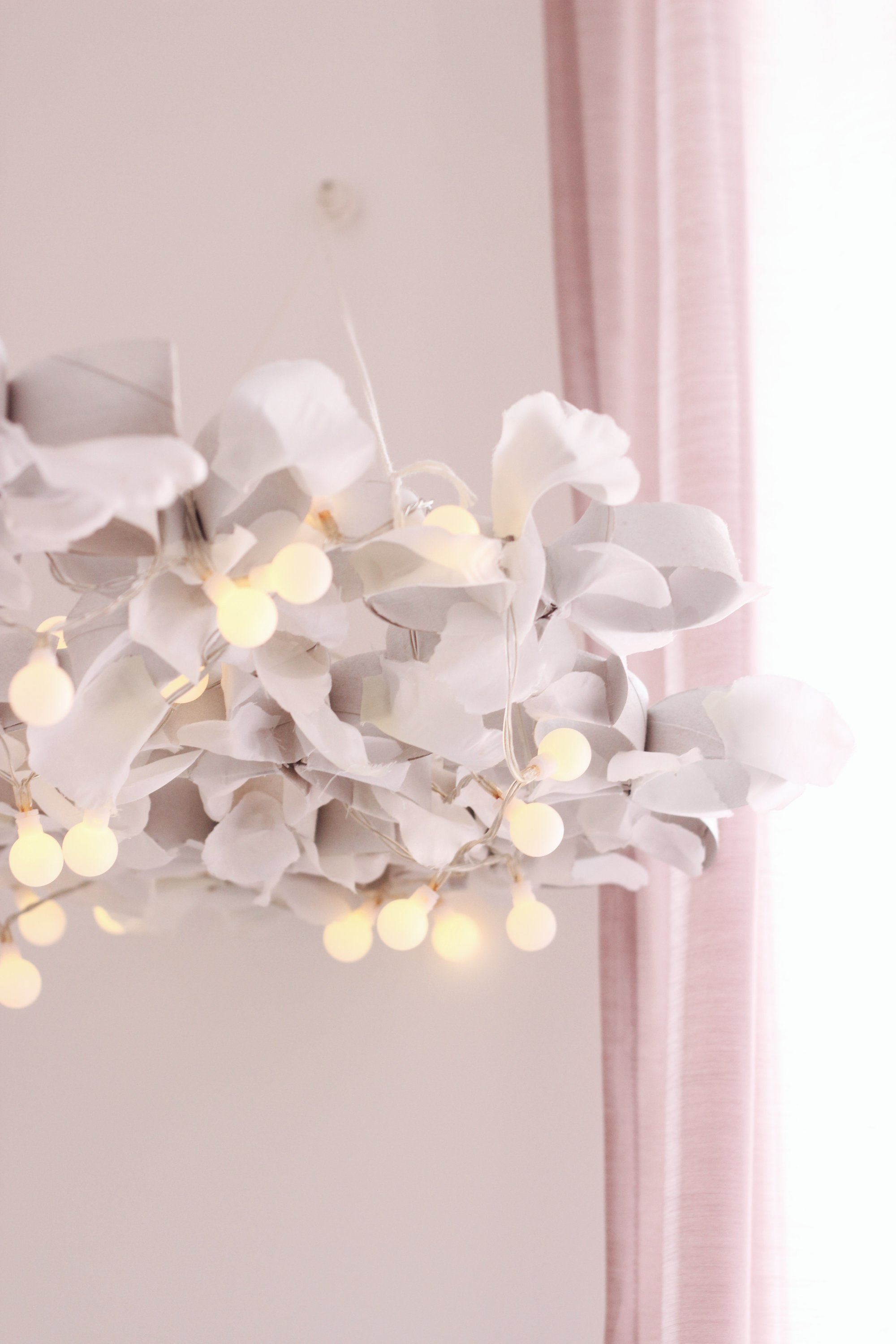 I’ve been having a lot of fun lately re-creating my own versions of expensive high end pieces. I will be posting them over the coming weeks. Let’s start with this flower cloud chandelier I found on Anthropologie.com, a beautiful statement piece that I thought would be a great addition to my daughter’s bedroom. It’s such a dreamy look. I just had to create my own.
