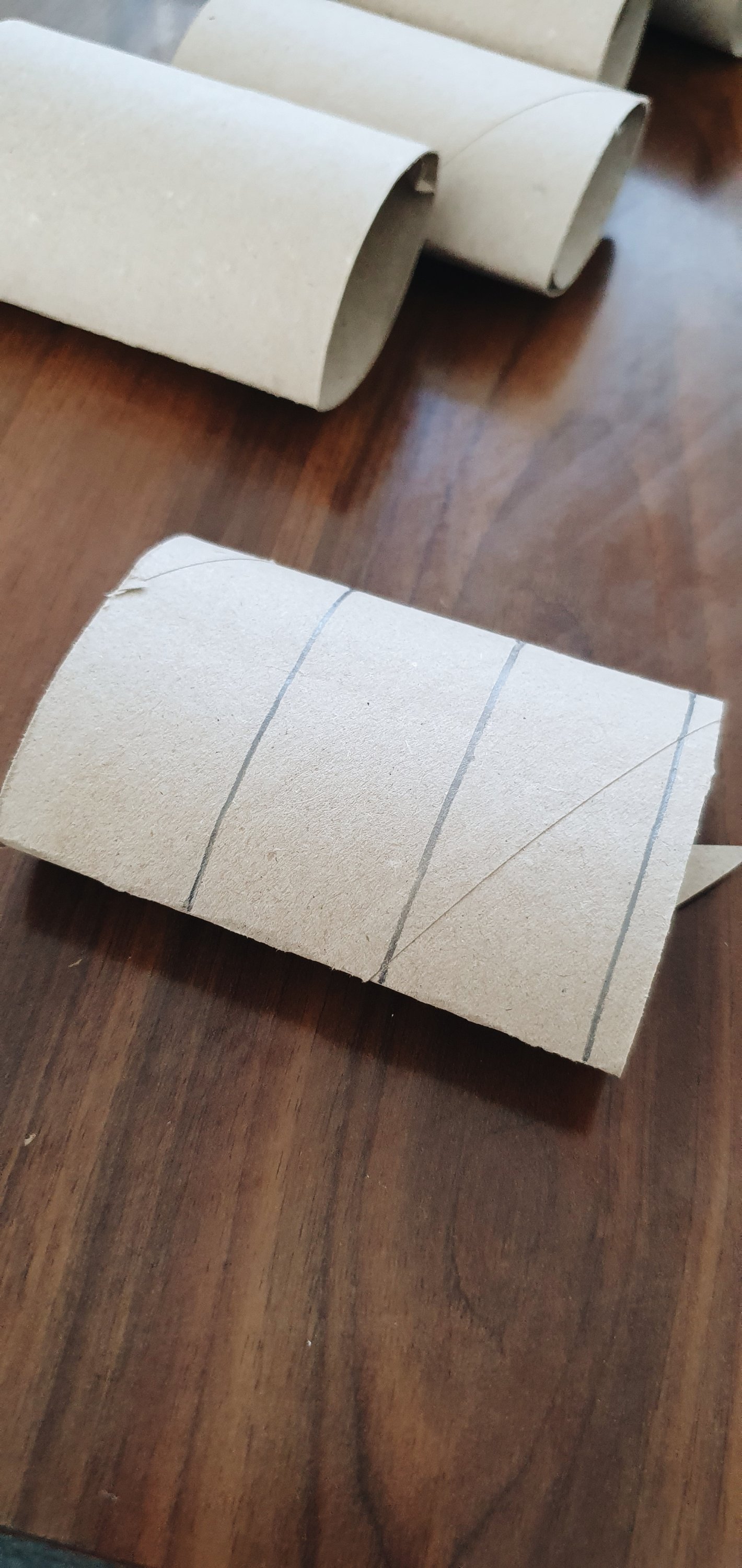 I flattened the roll, then using a pencil and ruler, divided it in 3 equal parts. I cut the pieces and ended up with 3 (equally sized) thin cylinders.