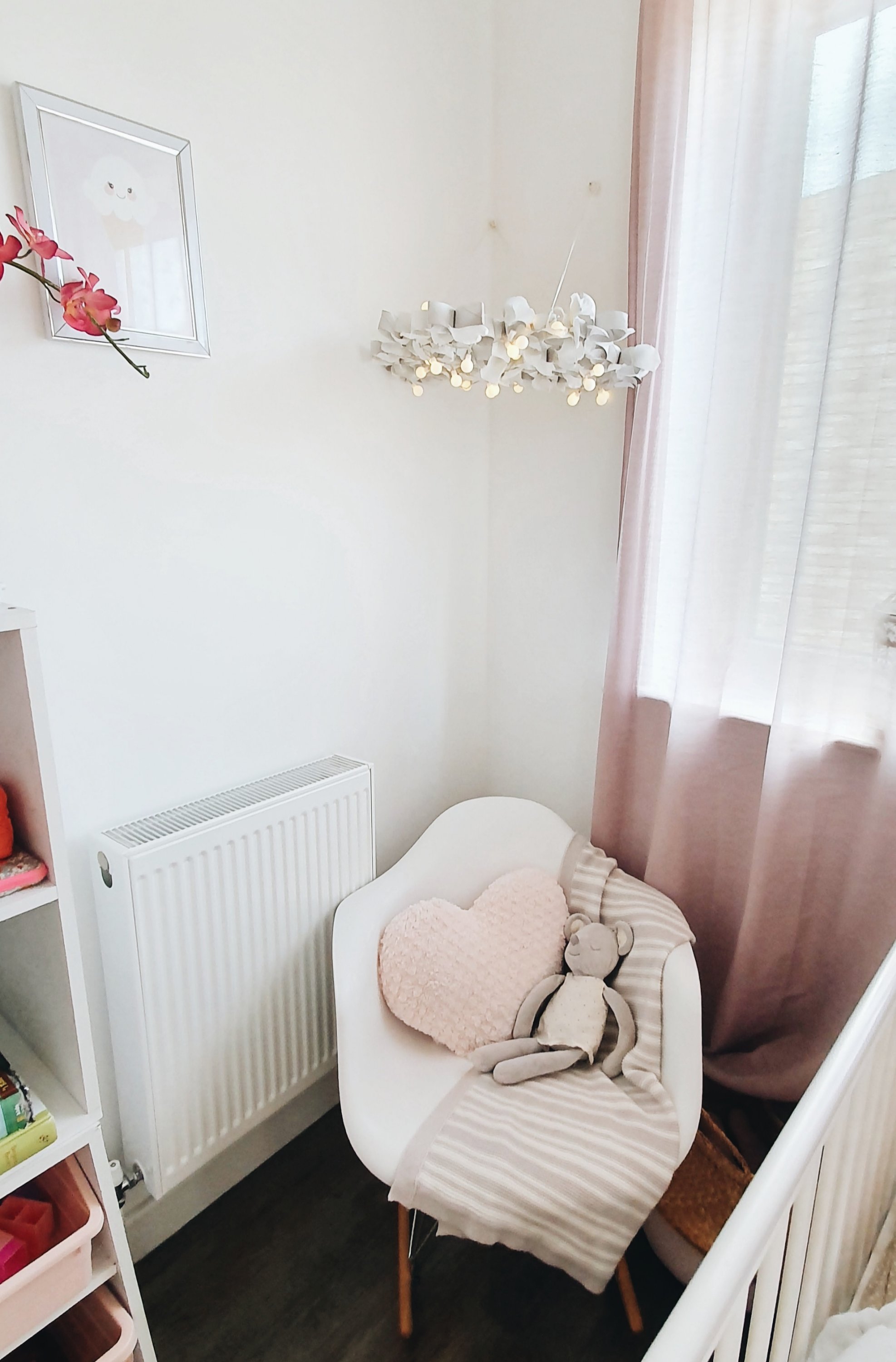 I think it works perfectly – a beautiful flower cloud over our heads as we read her bedtime stories. This piece has created the exact dreamy feel I was after…