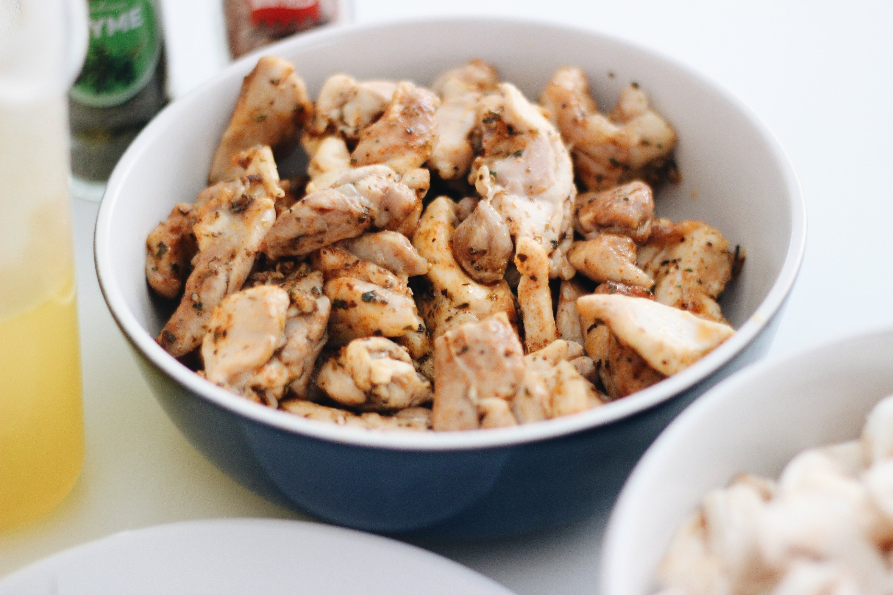 Start by roasting the chicken at 180° for about 15 minutes on each side. As mentioned above, you can use left over roast chicken – just shred it.