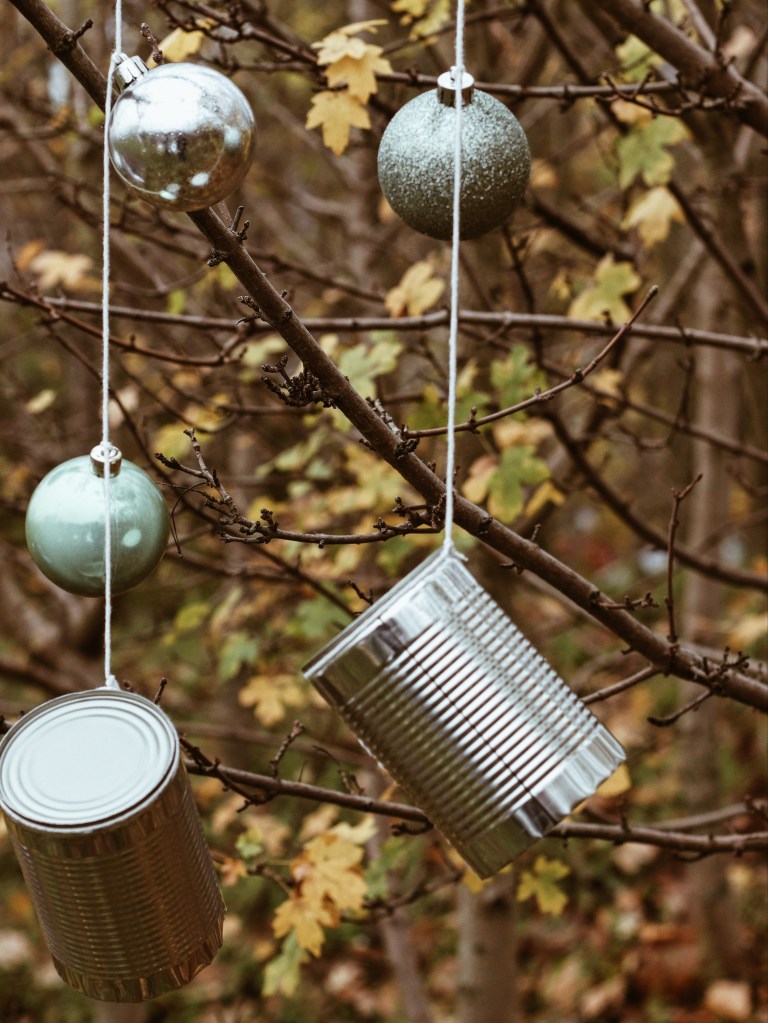 By saving your tin cans, you can create wind chimes, which are a common accessory to have in a garden adventure; but to make it really Christmas-y, why not add a few baubles? Use some thread to hang the tins and baubles, and for a better look, choose a variety of colours. This is not only a great way to recycle and re-purpose everyday household items, it’s also a unique Christmas decor idea.