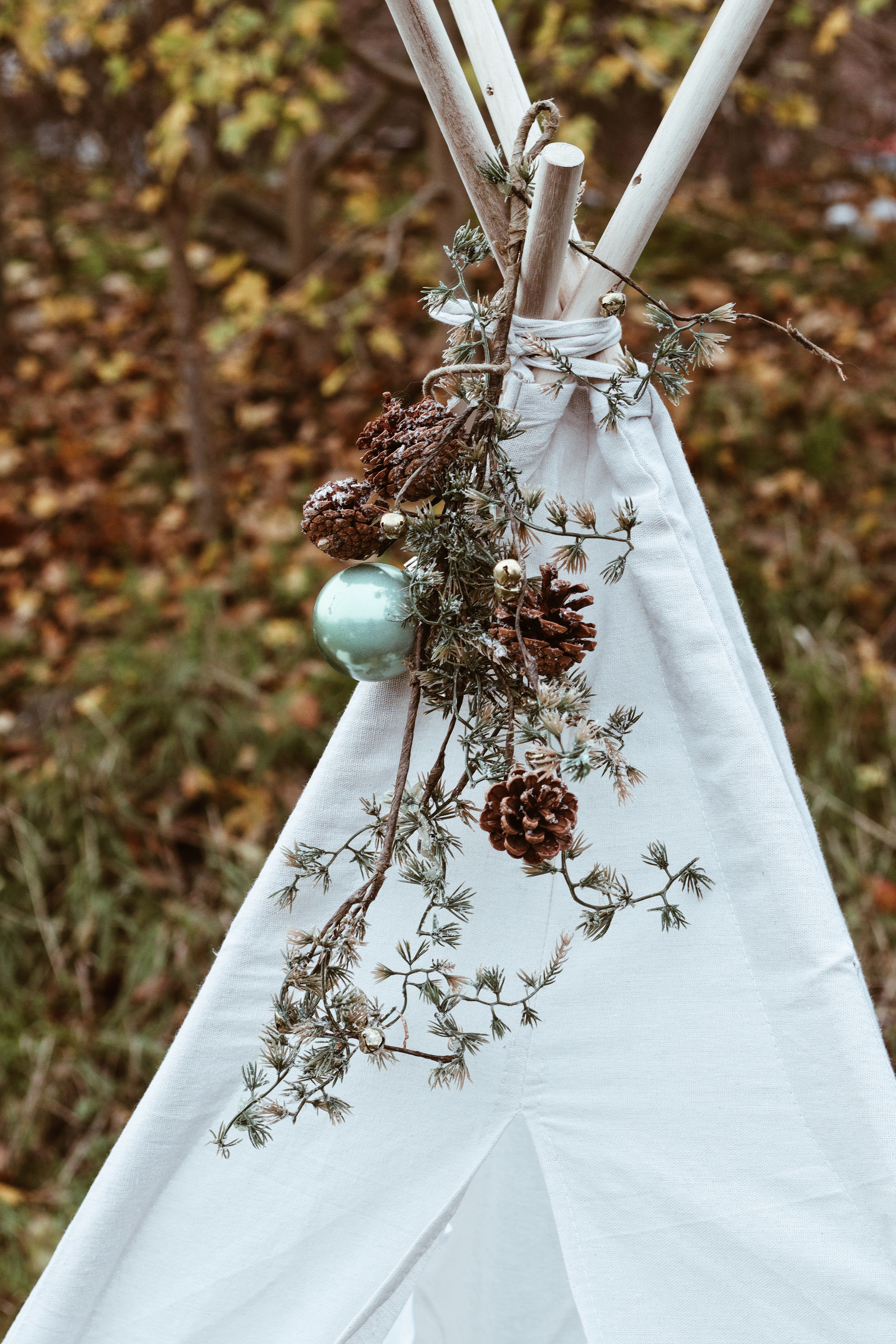 It all starts with a scene. I opted for the idea of an ‘enchanted garden’, which is reminiscent of enchanted forests children read about in their favourite tales. You could easily recreate a small village within the garden, with a little house and other homely elements. For our Christmas-themed village, we imagined a grotto and created one using a teepee tent. It did the job! A few Christmas decorations, my daughter’s toy reindeers for that authentic Christmas grotto look, a bag filled with presents, Christmas music playing in the background and there you have it: Santa’s grotto and a beautifully re-enacted winter wonderland!