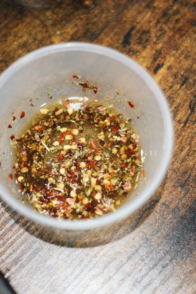 2. Mix all of the spices in a small bowl, pour the vegetable oil and stir. Then carefully pour a couple of drops onto the plantain peelings.