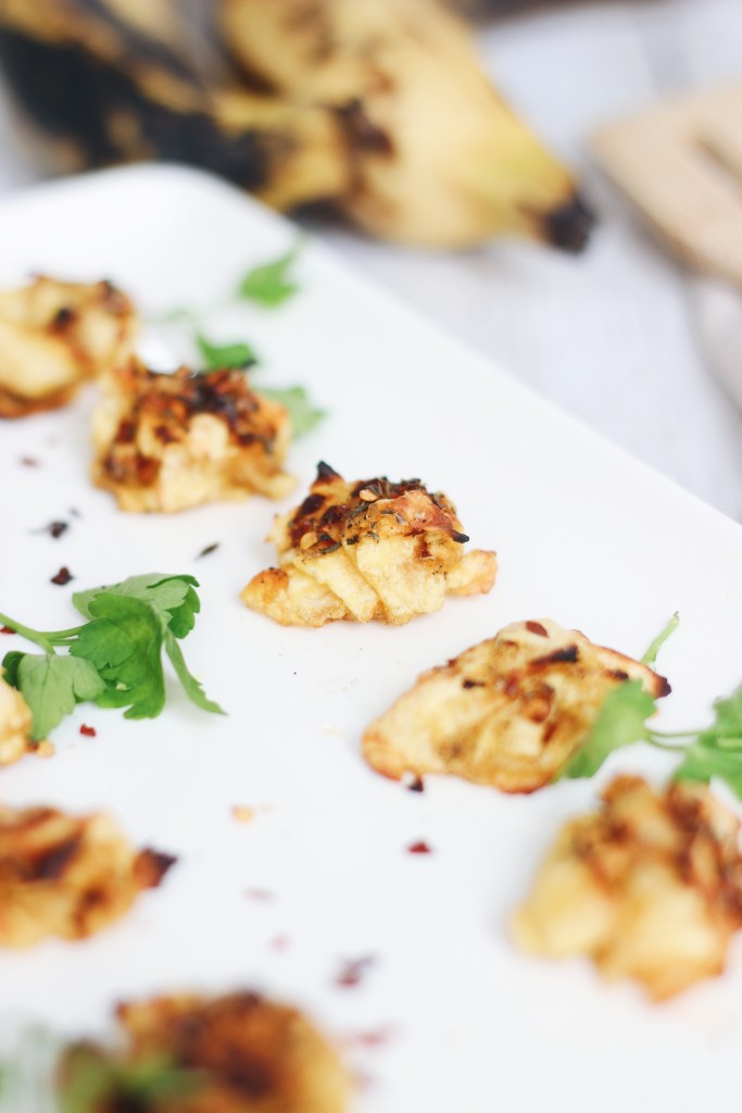 Last week I was experimenting with plantain and made these little bites, which are essentially thinly sliced plantain, seasoned and grilled until golden. They tasted so good I decided to post the recipe. This is a lovely idea for an appetiser, amuse-gueule or just another fancy-looking way to present plantain.