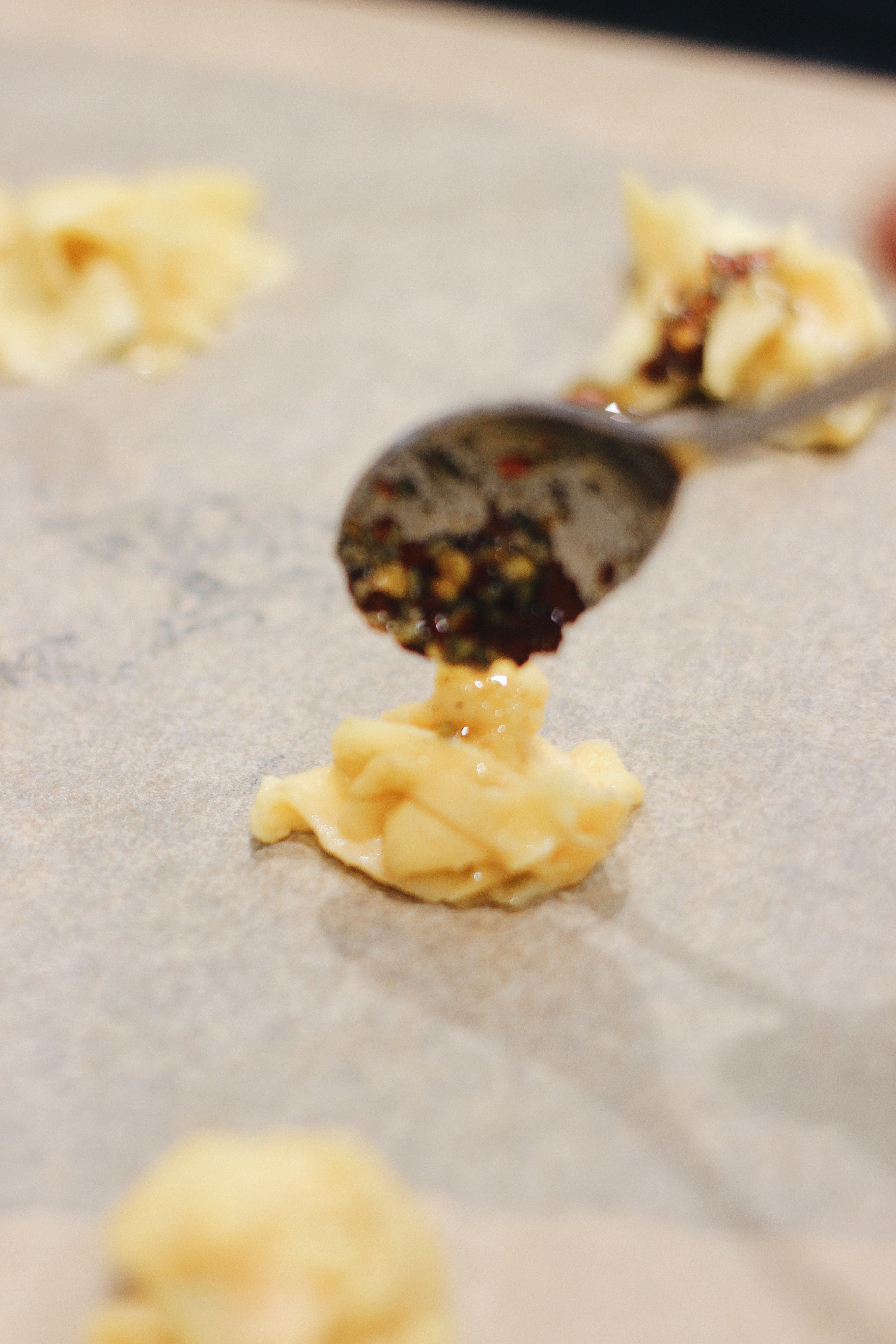 3. Put them in the oven until golden. I put mine under the grill for 5 minutes, then another 5 minutes in the normal oven setting at 180°. Depending on your oven, cooking time may vary but keep checking to make sure it doesn’t burn.