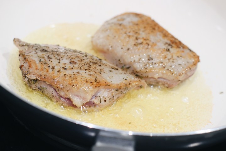 2. Once the fillets have been seared, put them in the oven at 180 degrees Celsius for 20 minutes.