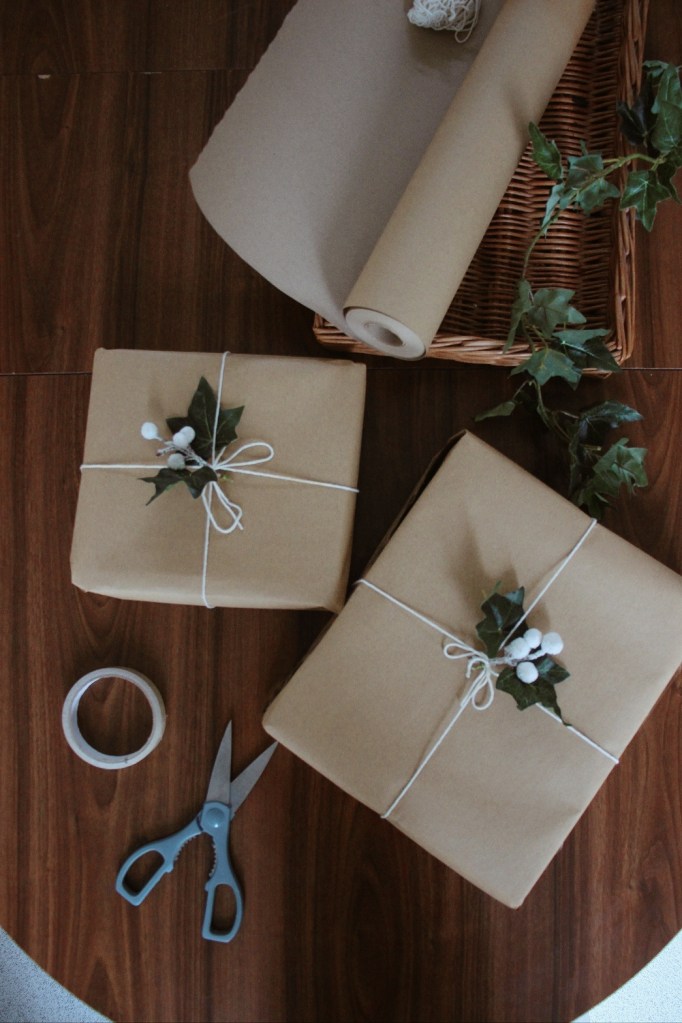 Christmas is approaching and I’m trying something different this year. I wanted to wrap the gifts with a more rustic, sustainable type of wrapping paper so I opted for this roll of eco-friendly brown ‘scrap’ paper. I thought it would work with my simple, low-key theme I have going on this year for Christmas.