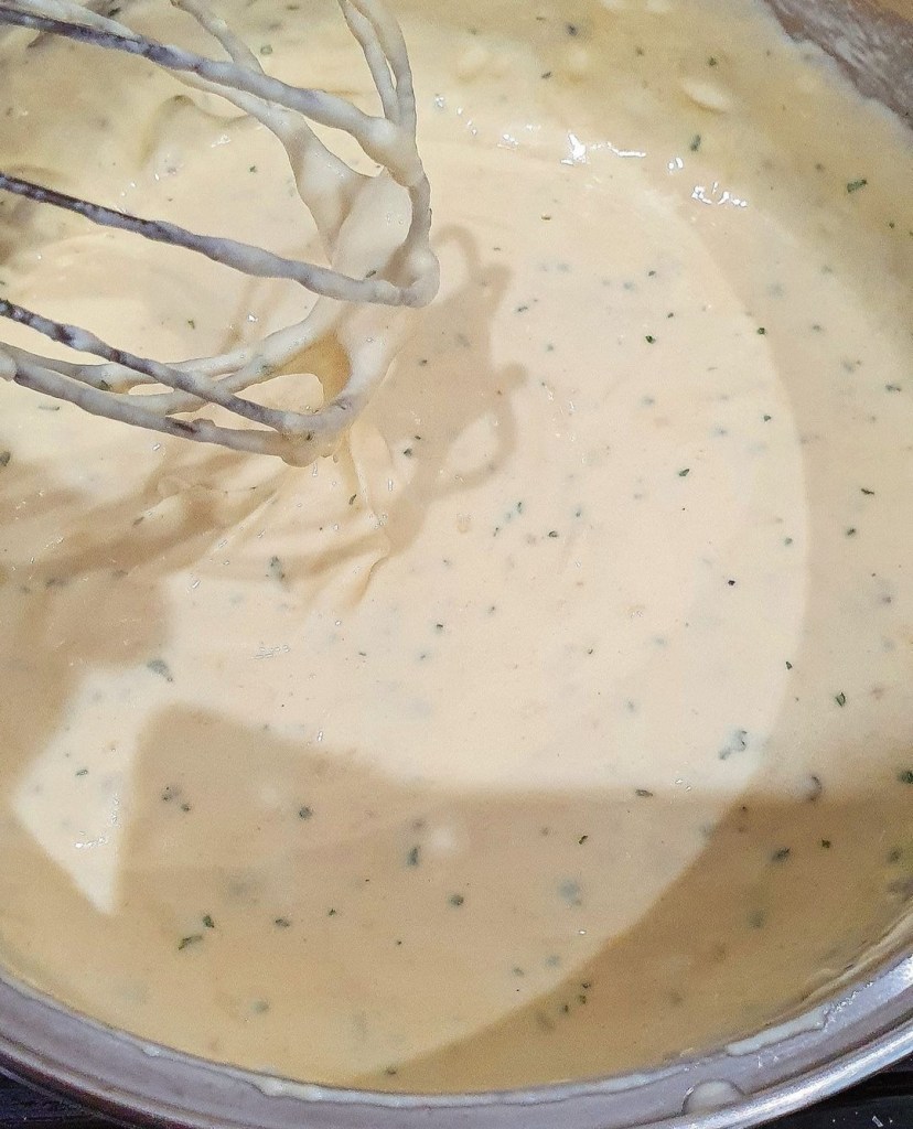 – Make your cheese sauce. Here’s how I make mine: about 30g melted butter, add 1 tablespoon flour, mix until you get a paste, add about 1 cup of milk, and then 1 cup of grated cheddar, keep whisking on low heat, until you get a thick cheese sauce. If not thick enough, add more cheese. Season with salt, black peppercorn and dried parsley.