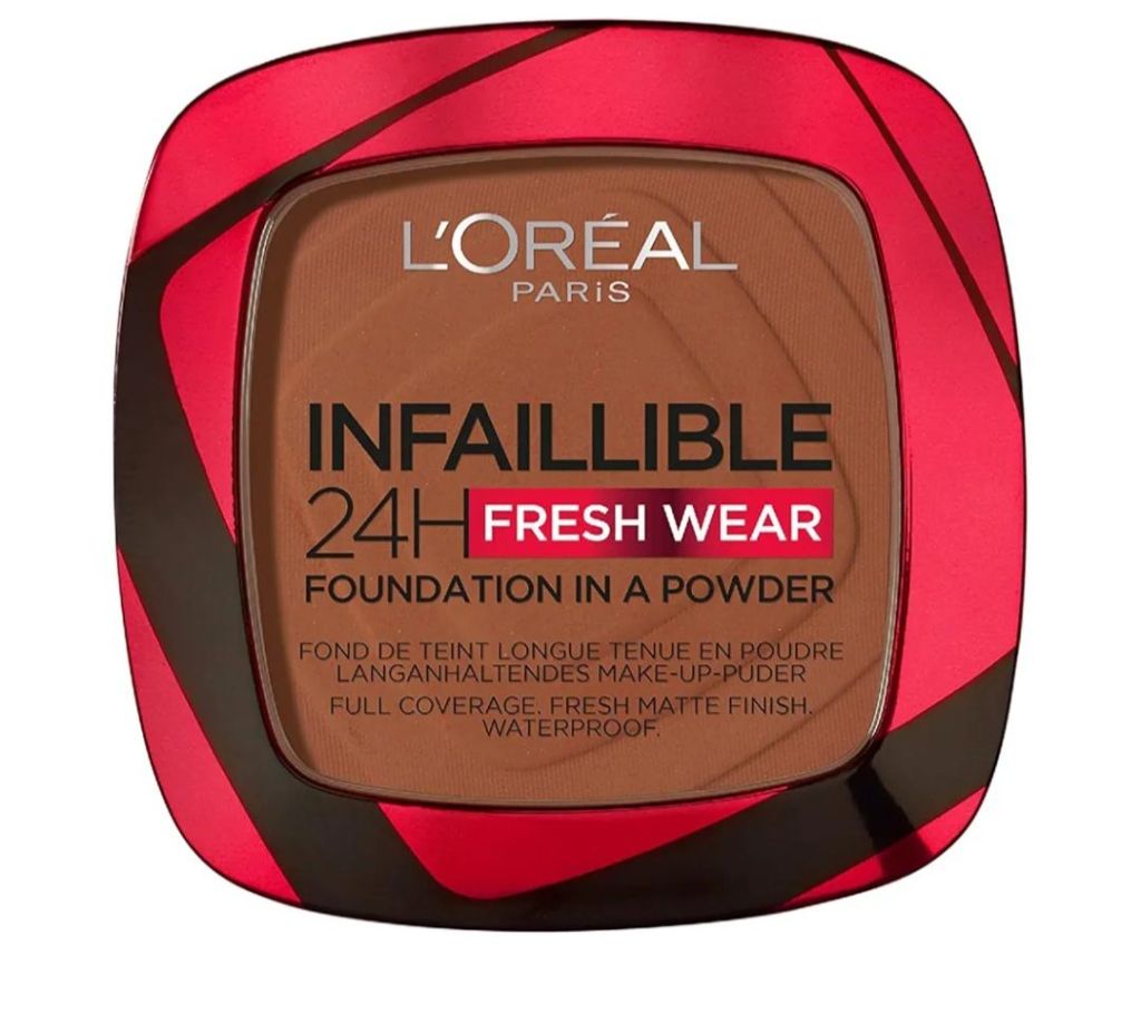 6. Set the face – L’Oreal Infallible Powder Foundation (Deep Amber)